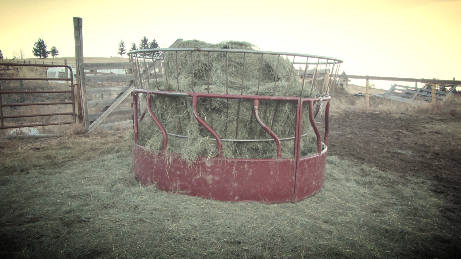 The feed site is kept fairly clean, the hay remains in the round bale feeder and the hay loss is kept to a minimum.